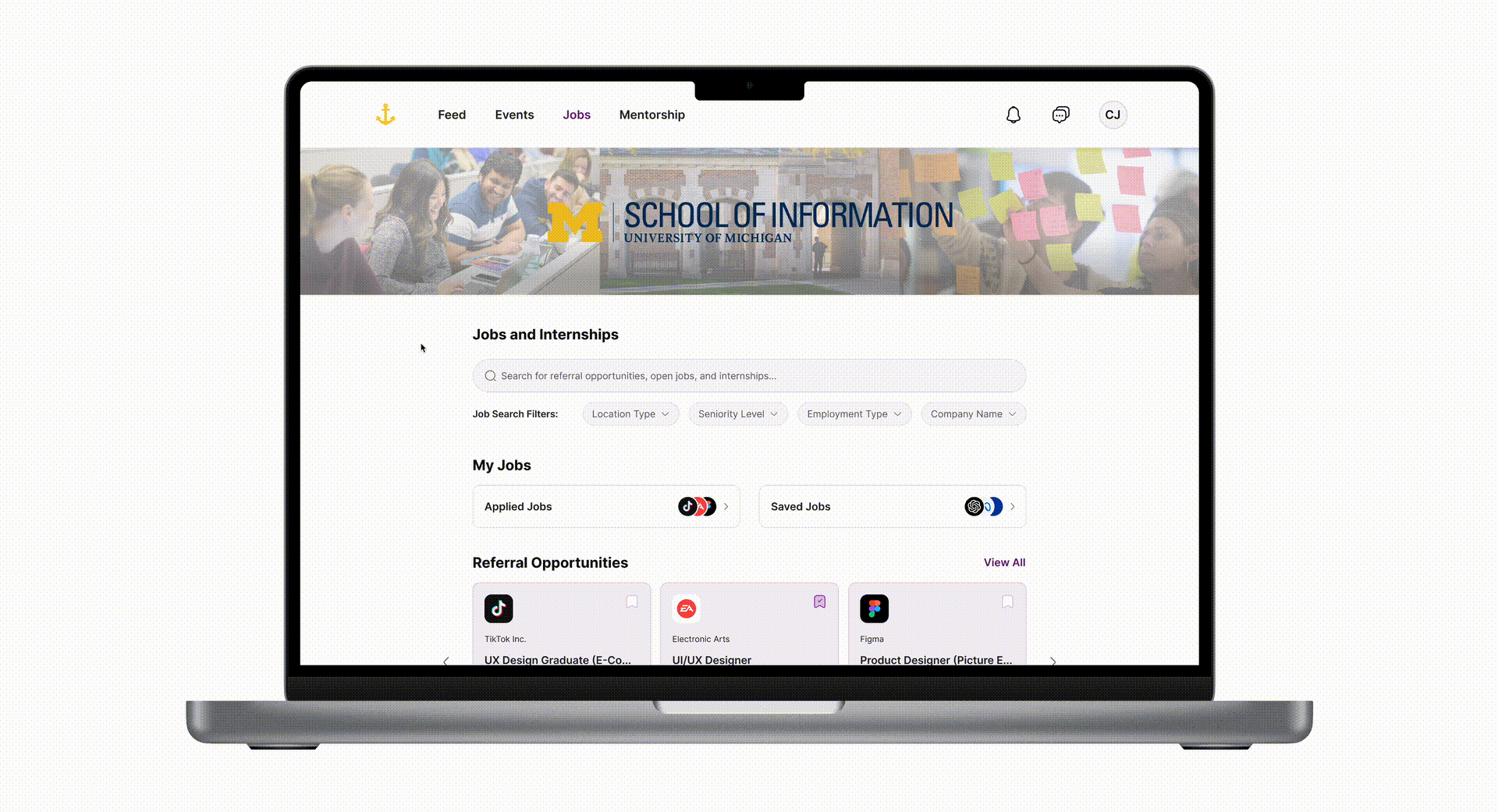 Jobs and internships are a cornerstone of the student experience, providing opportunities to gain real-world skills and build professional networks. However, for many students at the University of Michigan - School of Information (UMSI), navigating the job and internship process is an overwhelming challenge. Resources such as job boards, career events, and mentorship programs are scattered across multiple platforms, creating a fragmented and inefficient system. This disorganization often leaves students juggling competing priorities, missing deadlines, and feeling unsupported in their career journeys.