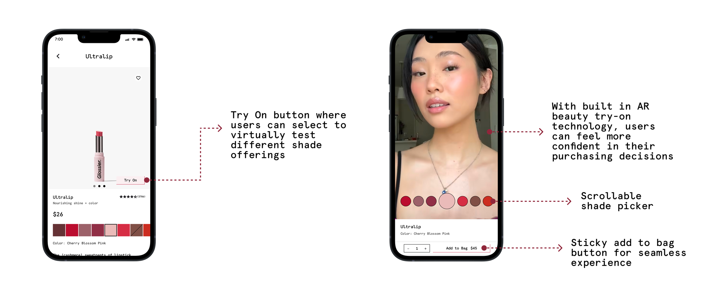 Two personas were created – Chloe Love and Amarie Davis – to outline the behaviors, frustrations, and needs of the Glossier customer when it comes to a makeup/beauty app experience.